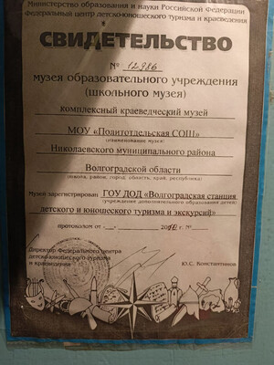 Школьный музей МОУ "Политотдельская СШ"
